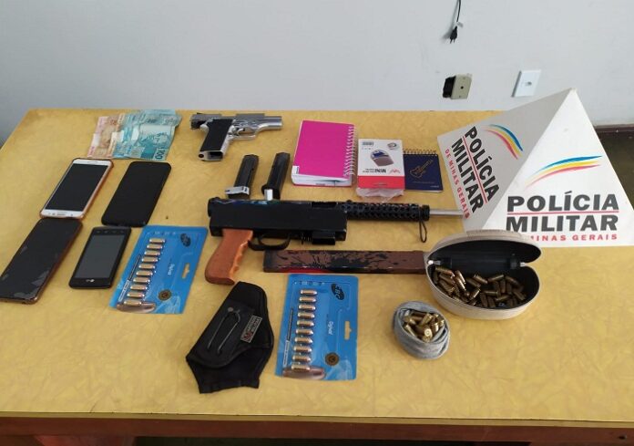 A pistola apreendida de calibre 380 estava com a numeração raspada e a submetralhadora de calibre 40 foi fabricada artesanalmente. Além das armas, os militares apreenderam 63 munições calibre 380, 22 munições calibre 40, mais de R$1.200,00 em dinheiro, balança de precisão e 02 porções de maconha. Os suspeitos e os materiais apreendidos foram encaminhados para a delegacia de Polícia Civil em Jacinto.