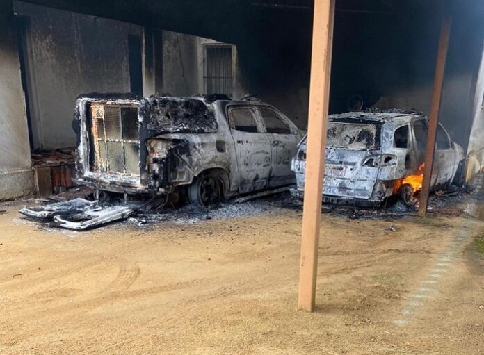 Segundo a PM o homem relatou que ficou inconformado por ser expulso da festa, e terem utilizado o spray de pimenta, então foi até sua residência, pegou uma garrafa tipo pet com gasolina, colocou no bolso da calça, e por volta das 5h, foi ao quartel, pulou o muro, jogou a gasolina em cima das viaturas e ateou fogo com um isqueiro, fugindo em seguida em uma bicicleta cor vermelha, conforme imagens de câmeras de segurança, que serão repassadas para a Polícia Civil. Ele foi preso em flagrante e conduzido à delegacia de Almenara. (Informações: PMMG. Fotos: Divulgação).