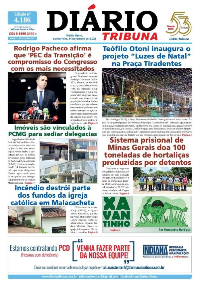 Diário Tribuna, 24 de Novembro 2022, Teófilo Otoni – MG Por diariotribuna - 24/11/2022 0 255 Facebook Twitter Google+ Pinterest WhatsApp Acesse o link abaixo e veja a edição completa do Diário Tribuna desta quinta-feira (24/11/2022) https://diariotribuna.com.br/wp-content/uploads/2022/11/DIARIO-TRIBUNA-53-ANOS-24-NOVEMBRO-2022.pdf