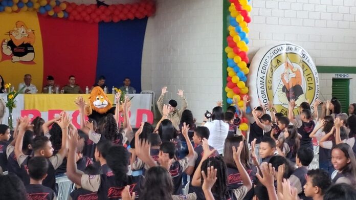 A Polícia Militar realizou a formatura de cerca de 240 alunos no Programa Educacional de Resistência às Drogas e à Violência (Proerd), na manhã de quinta-feira (24/11), na cidade de Joaíma, no Vale do Jequitinhonha. A formatura ocorreu no Ginásio Poliesportivo do Bairro Ipé. O Proerd foi ministrado pela soldado Débora ao longo deste segundo semestre.