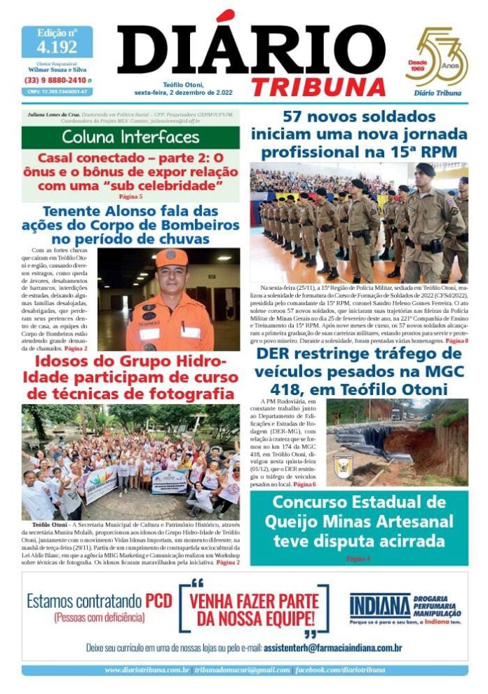 Diário Tribuna, 02 de Dezembro 2022, Teófilo Otoni – MG Por diariotribuna - 02/12/2022 0 430 Facebook Twitter Google+ Pinterest WhatsApp Acesse o link abaixo e veja a edição completa do Diário Tribuna desta sexta-feira (02/12/2022) https://diariotribuna.com.br/wp-content/uploads/2022/12/DIARIO-TRIBUNA-53-ANOS-02-DEZEMBRO-2022.pdf