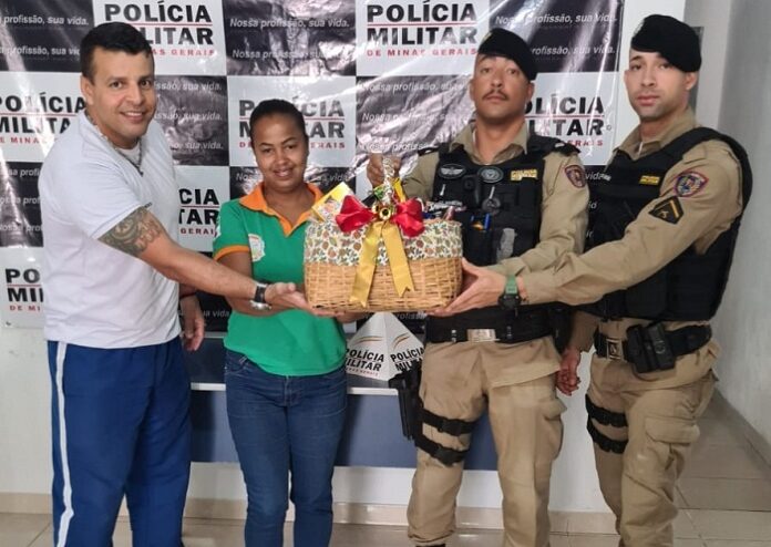 Os Militares contribuíram com uma pequena quantia em dinheiro e entregaram uma cesta Natalina, desejando um feliz Natal e boas festas à funcionária, como demonstração de agradecimento aos serviços prestados no âmbito do 2° Pelotão de Caraí/MG.