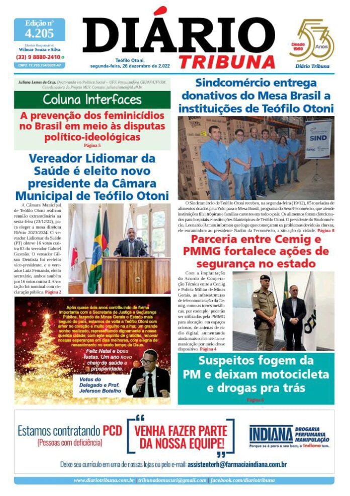 Diário Tribuna, 26 de Dezembro 2022, Teófilo Otoni – MG Por diariotribuna - 26/12/2022 0 269 Facebook Twitter Google+ Pinterest WhatsApp Acesse o link abaixo e veja a edição completa do Diário Tribuna desta segunda-feira (26/12/2022) https://diariotribuna.com.br/wp-content/uploads/2022/12/DIARIO-TRIBUNA-53-ANOS-26-DEZEMBRO-2022.pdf