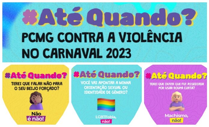 Com o slogan “#Até Quando? – PCMG contra a violência no Carnaval 2023”, a Polícia Civil de Minas Gerais preparou uma campanha de conscientização para o período carnavalesco. Diversos materiais, como adesivos, leques, cartilhas, banner e cartaz, estão disponíveis AQUI – e também em anexo – para a sensibilização dos foliões e de moradores.