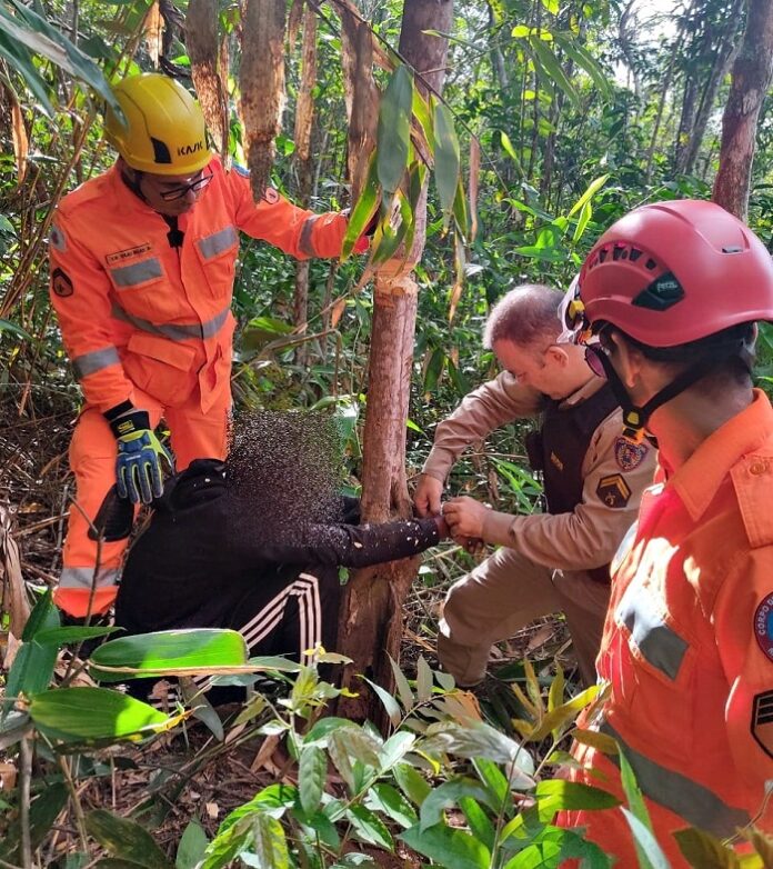 No local, os bombeiros constataram tratar-se de um homem que segundo relatos dele, foi abordado por quatro homens que não foram identificados por estarem encapuzados. A vítima, T.B.F. de 27 anos, foi conduzida até a mata, onde foi algemada em uma árvore por volta das 23h do dia anterior, e foi resgatado pela manhã, por volta das 7h, por equipes do Corpo de Bombeiros e da Polícia Militar.