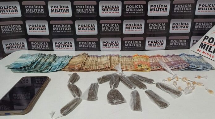 No estabelecimento comercial situado no Bairro Novo Horizonte, em Mata Verde, os militares apreenderam um total de 13 pedras de crack, 13 tabletes de maconha e mais de R$ 5,7 mil em dinheiro. O suspeito foi encaminhado para a delegacia de Polícia Civil em Almenara. (Informações/Foto: PMMG/ Mata Verde/ 44º BPM).