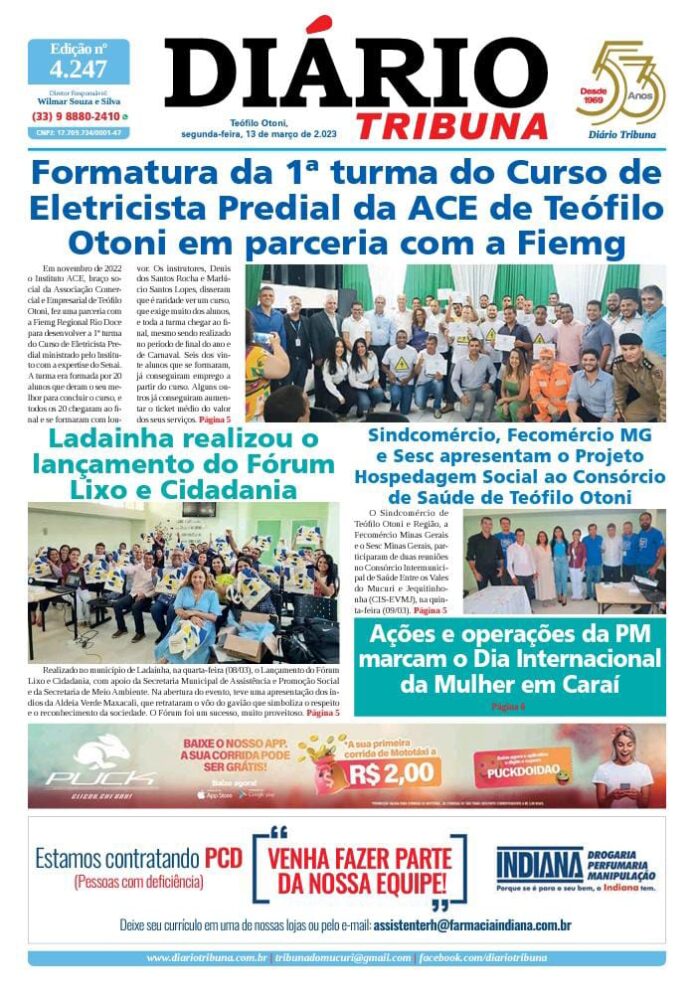 Diário Tribuna, 13 de Março 2023, Teófilo Otoni – MG Por diariotribuna - 13/03/2023 0 281 Facebook Twitter Google+ Pinterest WhatsApp Acesse o link abaixo e veja a edição completa do Diário Tribuna desta segunda-feira (13/03/2023) https://diariotribuna.com.br/wp-content/uploads/2023/03/DIARIO-TRIBUNA-53-ANOS-13-MARCO-2023.pdf