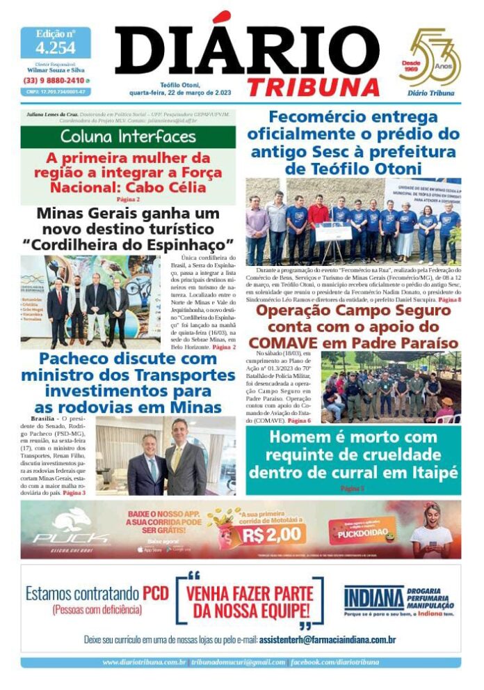 Diário Tribuna, 22 de Março 2023, Teófilo Otoni – MG Por diariotribuna - 22/03/2023 0 300 Facebook Twitter Google+ Pinterest WhatsApp Acesse o link abaixo e veja a edição completa do Diário Tribuna desta quarta-feira (22/03/2023) https://diariotribuna.com.br/wp-content/uploads/2023/03/DIARIO-TRIBUNA-53-ANOS-22-MARCO-2023.pdf
