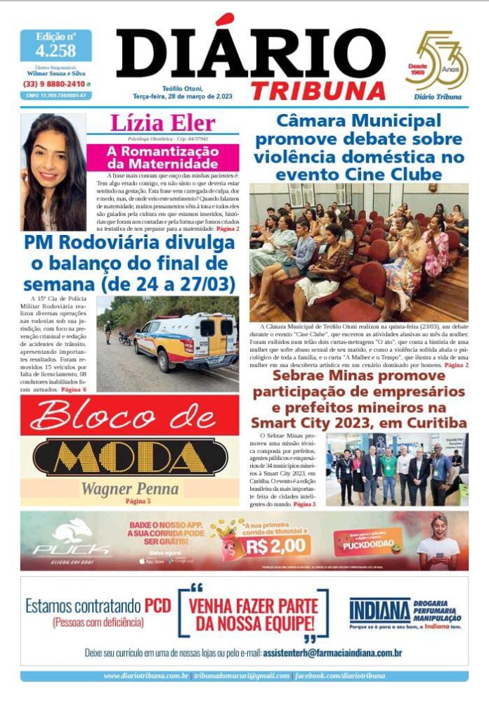 Diário Tribuna, 28 de Março 2023, Teófilo Otoni – MG Por diariotribuna - 28/03/2023 0 209 Facebook Twitter Google+ Pinterest WhatsApp Acesse o link abaixo e veja a edição completa do Diário Tribuna desta terça-feira (28/03/2023) https://diariotribuna.com.br/wp-content/uploads/2023/03/DIARIO-TRIBUNA-53-ANOS-28-MARCO-2023.pdf
