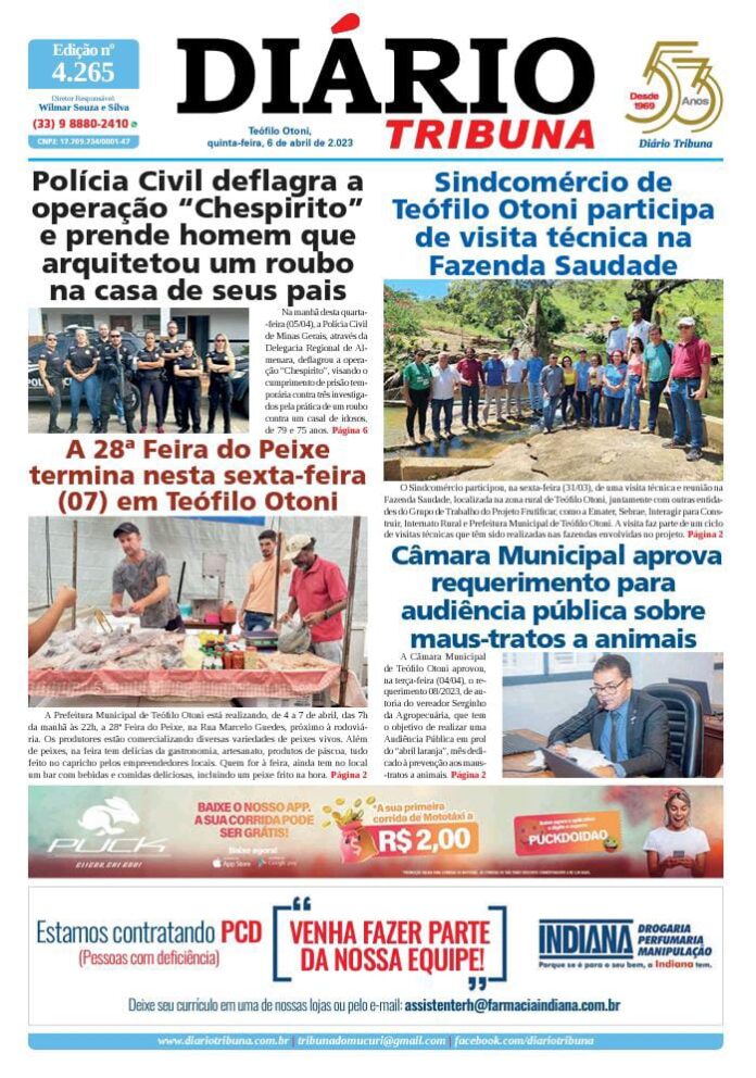 Diário Tribuna, 6 de Abril 2023, Teófilo Otoni – MG Por diariotribuna - 06/04/2023 0 400 Facebook Twitter Google+ Pinterest WhatsApp Acesse o link abaixo e veja a edição completa do Diário Tribuna desta quinta-feira (06/04/2023) https://diariotribuna.com.br/wp-content/uploads/2023/04/DIARIO-TRIBUNA-53-ANOS-06-ABRIL-2023.pdf