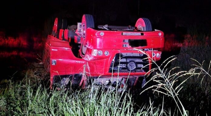 Pavão – A Polícia Militar Rodoviária foi acionada, nesta segunda-feira (22), para atender uma saída de pista na MG-409, entre as cidades de Novo Oriente de Minas e Pavão, envolvendo um caminhão transportando 28 animais bovinos. O motorista disse que trafegava sentido Pavão, e por volta da meia noite, nas proximidades do Distrito de Frei Gonzaga, percebeu que um dos pneus dianteiros havia estourado, motivo que o levou a perder o controle do veículo, sair da pista e tombar.