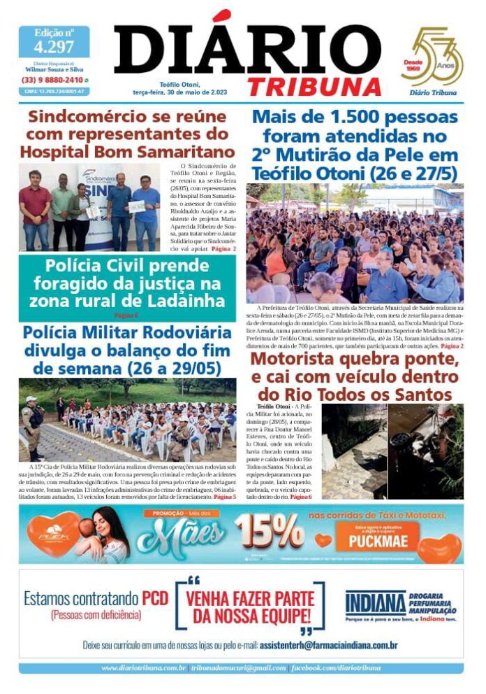 Diário Tribuna, 30 de Maio 2023, Teófilo Otoni – MG Por diariotribuna - 30/05/2023 0 271 Facebook Twitter Google+ Pinterest WhatsApp Acesse o link abaixo e veja a edição completa do Diário Tribuna desta terça-feira (30/05/2023) https://diariotribuna.com.br/wp-content/uploads/2023/05/DIARIO-TRIBUNA-53-ANOS-30-MAIO-2023.pdf