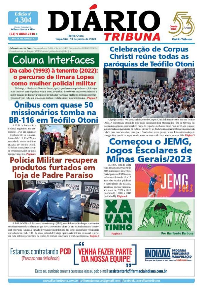 Diário Tribuna, 13 de Junho 2023, Teófilo Otoni – MG Por diariotribuna - 13/06/2023 0 238 Facebook Twitter Google+ Pinterest WhatsApp Acesse o link abaixo e veja a edição completa do Diário Tribuna desta terça-feira (13/6/2023) https://diariotribuna.com.br/wp-content/uploads/2023/06/DIARIO-TRIBUNA-53-ANOS-13-JUNHO-2023.pdf