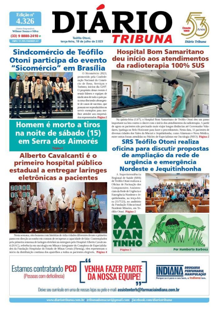 Diário Tribuna, 18 de Julho 2023, Teófilo Otoni – MG Por diariotribuna - 18/07/2023 0 237 Facebook Twitter Google+ Pinterest WhatsApp Acesse o link abaixo e veja a edição completa do Diário Tribuna desta terça-feira (18/7/2023) https://diariotribuna.com.br/wp-content/uploads/2023/07/DIARIO-TRIBUNA-53-ANOS-18-JULHO-2023.pdf