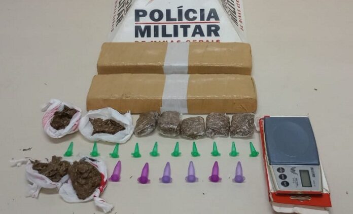 Segundo a PM, o denunciado não foi localizado, mas durante buscas no local, foram encontrados entorpecentes que foram apreendidos. O suspeito foi qualificado para posteriores investigações. Foram apreendidos: 2 barras de maconha prensada, 16 pinos com cocaína, 9 tabletes de maconha e 1 balança de precisão. Equipe GEPAR: sargento Mikael, cabos Abrantes e Ribeiro. (Informações/Foto: PMMG/ 19º BPM).