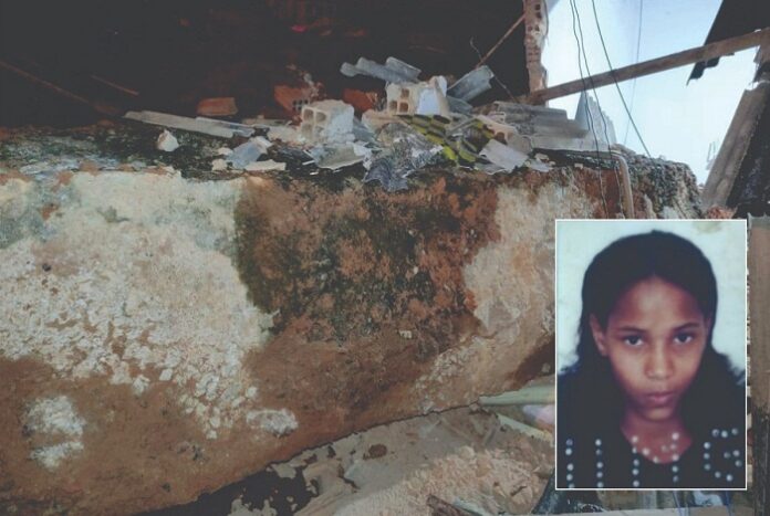 No local, os bombeiros observaram que um grande bloco de concreto desprendeu-se de uma estrutura utilizada como passarela, deslizou-se, atingiu uma residência e caiu sobre a vítima identificada como sendo Márcia Rodrigues Sena, de 30 anos, que teve morte instantânea após esmagamento do seu corpo.