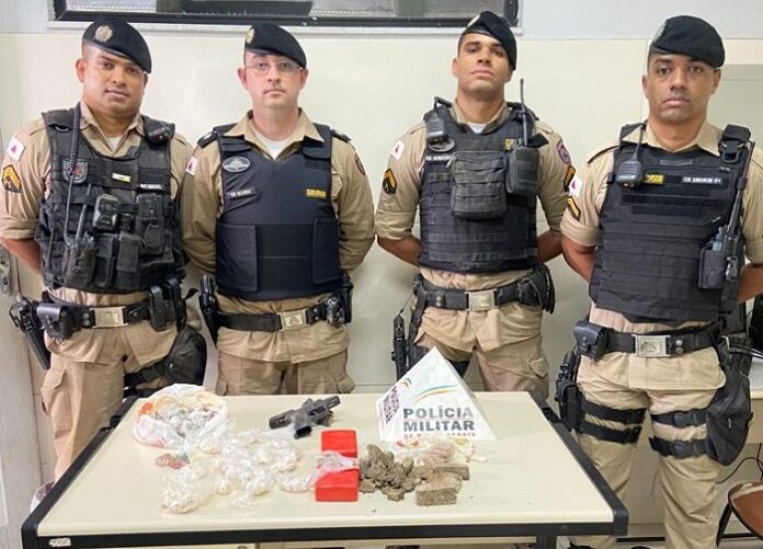 Dentro do tambor foram encontradas uma pistola de calibre 40, restrito, e 16 munições intactas 40, dois carregadores, além de grande quantidade de drogas: 630 pedras de crack, 150 buchas de maconha, 100 gramas de pedra bruta de crack, 2 tabletes de maconha prensada e 1 porção da mesma substância, 97 comprimidos de êxtase. Equipe GEPAR: tenente Ricardo, sargento Mikael, cabos Amorim e Ribeiro. (Informações/Fotos: PMMG/ 19º BPM/ Teófilo Otoni).