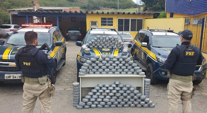 Segundo a PRF, por se tratar de droga de alta pureza, essa fiscalização resultou no prejuízo ao tráfico de mais de R$ 9 milhões, sendo a maior apreensão dessa substância no Nordeste Mineiro. Ocorrência foi apresentada ao plantão da Polícia Civil de Teófilo Otoni, para adoção das medidas de polícia judiciária. (Informações/Foto: PRF, Teófilo Otoni).