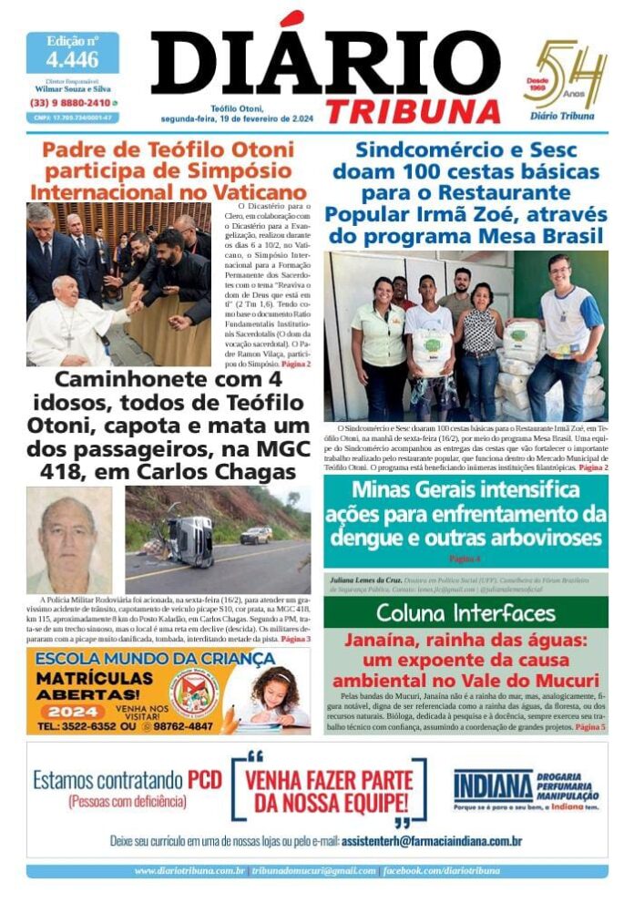 Diário Tribuna, 19 de Fevereiro de 2024, Teófilo Otoni – MG Por diariotribuna - 19/02/2024 0 129 Facebook Twitter Google+ Pinterest WhatsApp Acesse o link abaixo e veja a edição completa do Diário Tribuna desta segunda-feira (19/2/2024) https://diariotribuna.com.br/wp-content/uploads/2024/02/DIARIO-TRIBUNA-54-ANOS-19-FEVEREIRO-2024.pdf