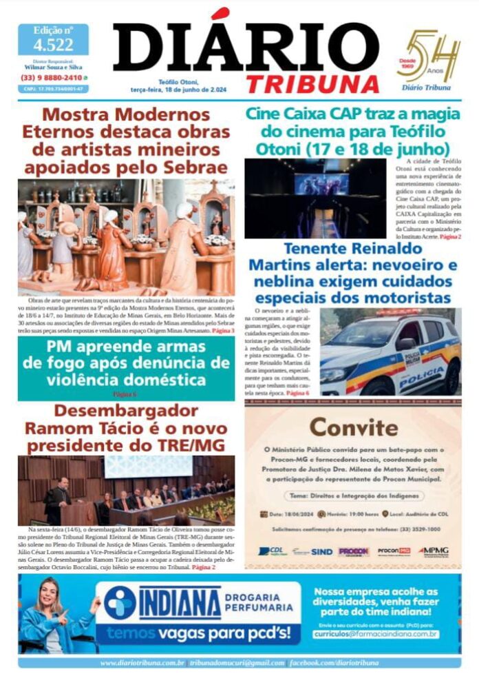 Diário Tribuna, 18 de Junho de 2024, Teófilo Otoni – MG Por diariotribuna - 18/06/2024 0 156 Facebook Twitter Google+ Pinterest WhatsApp Acesse o link abaixo e veja a edição completa do Diário Tribuna desta terça-feira (18/6) https://diariotribuna.com.br/wp-content/uploads/2024/06/DIARIO-TRIBUNA-54-ANOS-18-JUNHO-2024.pdf