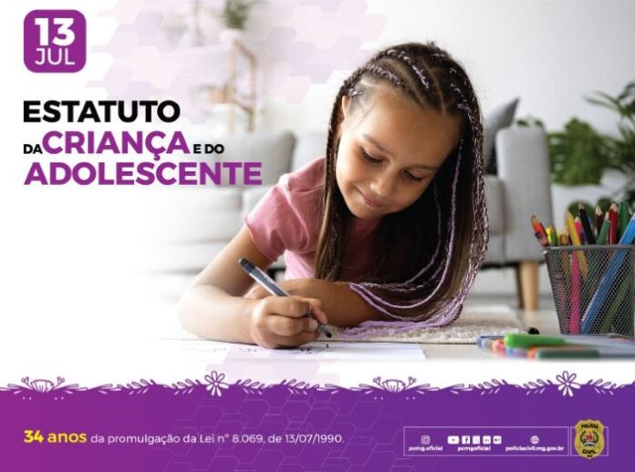 A partir da Lei nº 8.069, de 13 de julho de 1990, o Estatuto da Criança e do Adolescente (ECA) se tornou referência, inclusive para outros países. A Polícia Civil de Minas Gerais (PCMG) reitera seu compromisso institucional na defesa dos direitos dos jovens, garantindo a aplicação da lei para os mais vulneráveis. Confira o ECA neste link: https://www.planalto.gov.br/ccivil_03/leis/l8069.htm (Informações/Imagem: Assessoria de comunicação/ PCMG).