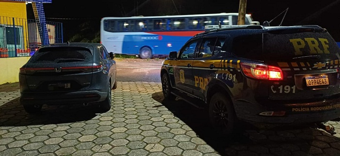 PRF de Teófilo Otoni recupera veículo roubado e clonado em São Paulo – Na noite de terça-feira (3/12), na BR 116, perímetro urbano de Teófilo Otoni, a equipe PRF abordou o veículo HRV, de cor cinza, e verificou que o veículo havia sido roubado, de uma mulher e sua filha pequena, por dois indivíduos armados, em São Paulo. O veículo estava sendo levado para Trancoso/BA.