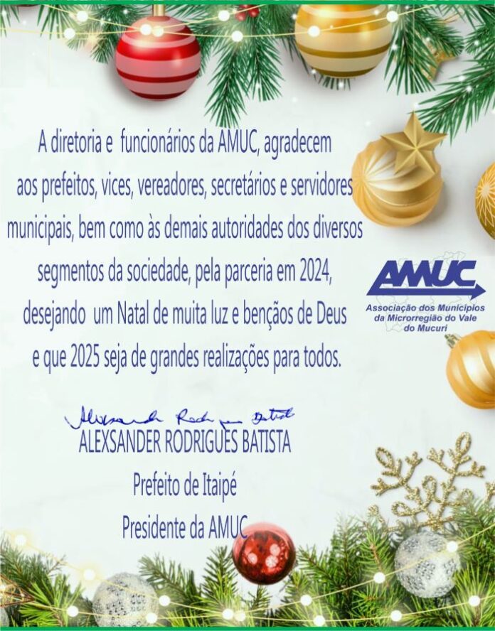 AMUC: diretoria e funcionários desejam a todos um Feliz Natal e um Próspero Ano Novo! Por diariotribuna - 23/12/2024 0 84 Facebook Twitter Google+ Pinterest WhatsApp