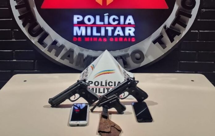 Durante a operação, os militares viram o menor entrando em uma residência de familiares, no bairro Santo Antônio, com um volume na linha da cintura, possivelmente sendo uma arma de fogo. Com autorização, os militares entraram e abordaram o menor, não localizaram nada com ele, mas ele informou onde estavam 2 simulacros de arma de fogo tipo pistola, e 1 pistola Beretta calibre 22 descarregada. O menor foi conduzido à delegacia de Polícia Civil acompanhado de um representante legal. (Informações/Foto: PMMG/ 19º BPM/ Teófilo Otoni).