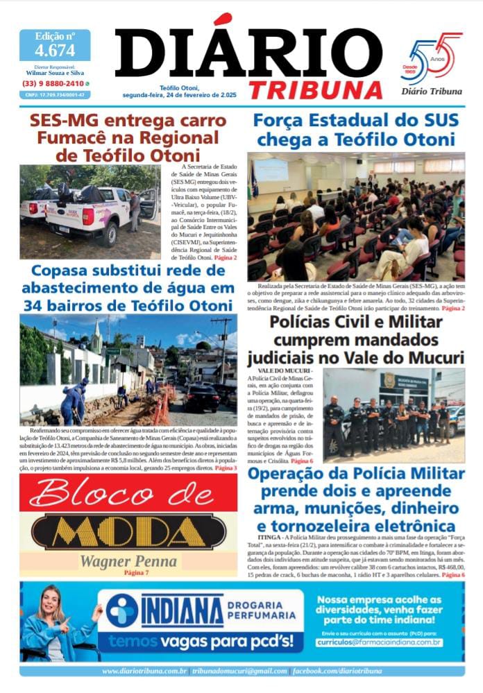 Diário Tribuna, 24 de Fevereiro de 2025, Teófilo Otoni – MG 24/02/2025 0 86 Facebook Twitter Google+ Pinterest WhatsApp Acesse o link abaixo e veja a edição completa do Diário Tribuna desta segunda-feira (24/2/2025) https://diariotribuna.com.br/wp-content/uploads/2025/02/DIARIO-TRIBUNA-55-ANOS-24-FEVEREIRO-2025.pdf