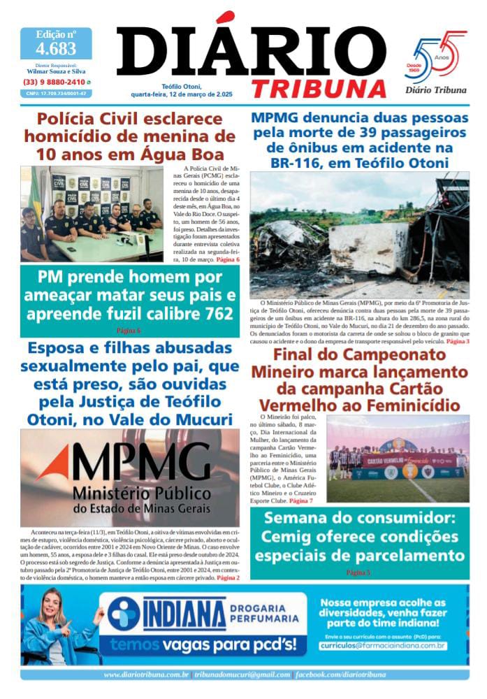 Diário Tribuna, 12 de Março de 2025, Teófilo Otoni – MG 12/03/2025 0 121 Facebook Twitter Google+ Pinterest WhatsApp Acesse o link abaixo e veja a edição completa do Diário Tribuna desta quarta-feira (12/3/2025) https://diariotribuna.com.br/wp-content/uploads/2025/03/DIARIO-TRIBUNA-55-ANOS-12-MARCO-2025.pdf