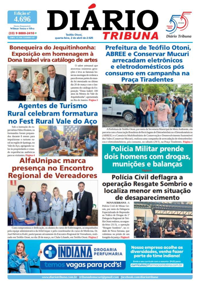 Diário Tribuna, 2 de Abril de 2025, Teófilo Otoni – MG 02/04/2025 0 71 Facebook Twitter Google+ Pinterest WhatsApp Acesse o link abaixo e veja a edição completa do Diário Tribuna desta quarta-feira (2/4/2025) https://diariotribuna.com.br/wp-content/uploads/2025/04/DIARIO-TRIBUNA-55-ANOS-02-ABRIL-2025.pdf