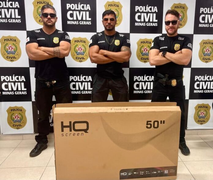 “As investigações prosseguem com o objetivo de localizar e recuperar as demais TVs que teriam sido adquiridas por terceiros para que sejam responsabilizados judicialmente”, informou o delegado. Equipe PCMG: dr. Eduardo Gil (Delegado de Polícia); Lucas (Escrivão); Anderson Schultz, Cláudio Borges e Erick Mateus (Investigadores). (Informações/Foto: PCMG, dr. Eduardo Gil/ Teófilo Otoni).