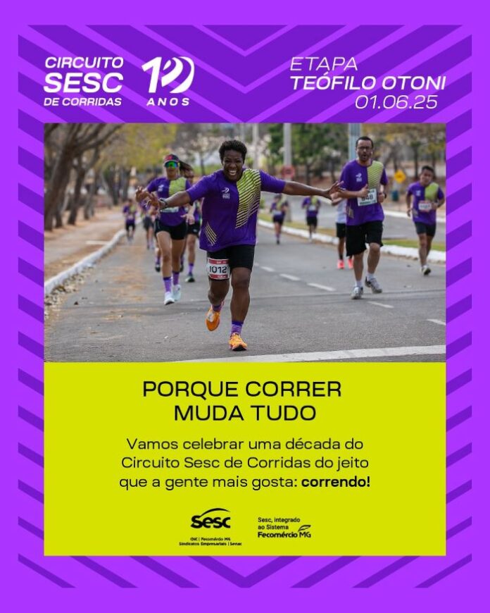 Foi dada a largada para a comemoração dos 10 anos do Circuito Sesc de Corrida. Desde o início, mais de 32 mil atletas já passaram pelas pistas em 13 municípios de Minas Gerais. E em 2025, a organização segue firme no propósito de incentivar o movimento, a saúde e a transformação que a corrida proporciona. A primeira etapa do ano começa em Teófilo Otoni.