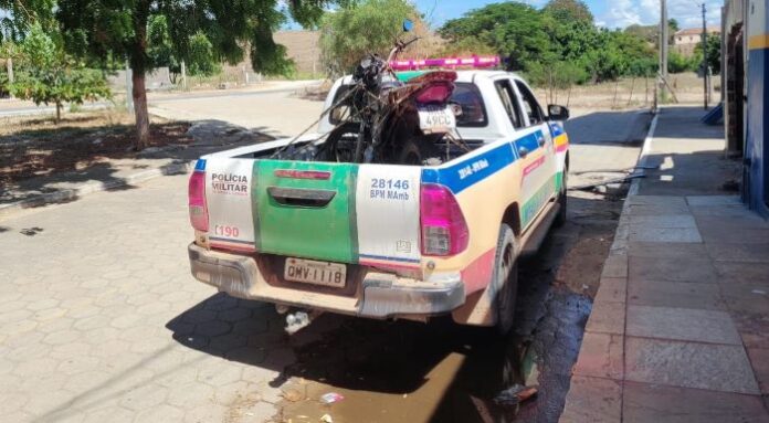 O homem afirmou desconhecer a existência da arma, e durante buscas no entorno da residência, uma motocicleta Honda Bros preta foi localizada. Segundo a PM, a fiscalização mostrou que o chassi e o número do motor estavam suprimidos, além da placa ser falsa e feita com material não regulamentado, indicando que o veículo era possivelmente produto de furto ou roubo.