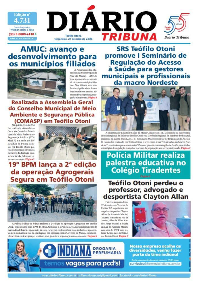 Diário Tribuna, 27 de Maio de 2025, Teófilo Otoni – MG 27/05/2025 0 47 Facebook Twitter Google+ Pinterest WhatsApp Acesse o link abaixo e veja a edição completa do Diário Tribuna desta terça-feira (27/5/2025) https://diariotribuna.com.br/wp-content/uploads/2025/05/DIARIO-TRIBUNA-55-ANOS-27-MAIO-2025.pdf