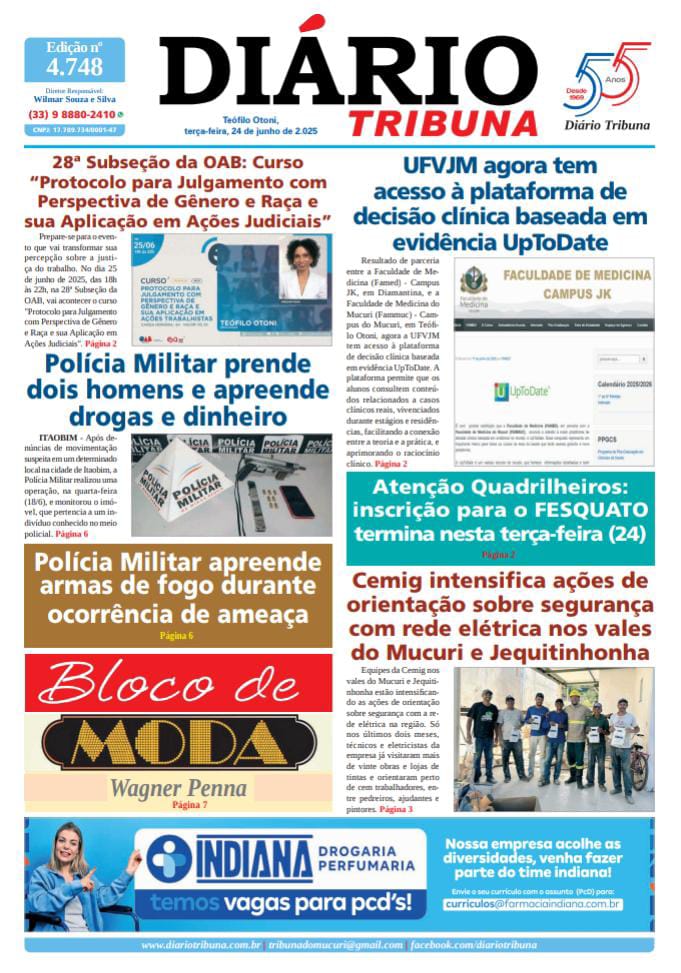 Diário Tribuna, 24 de Junho de 2025, Teófilo Otoni – MG 24/06/2025 0 56 Facebook Twitter Google+ Pinterest WhatsApp Acesse o link abaixo e veja a edição completa do Diário Tribuna desta terça-feira (24/6/2025) https://diariotribuna.com.br/wp-content/uploads/2025/06/DIARIO-TRIBUNA-55-ANOS-24-JUNHO-2025.pdf