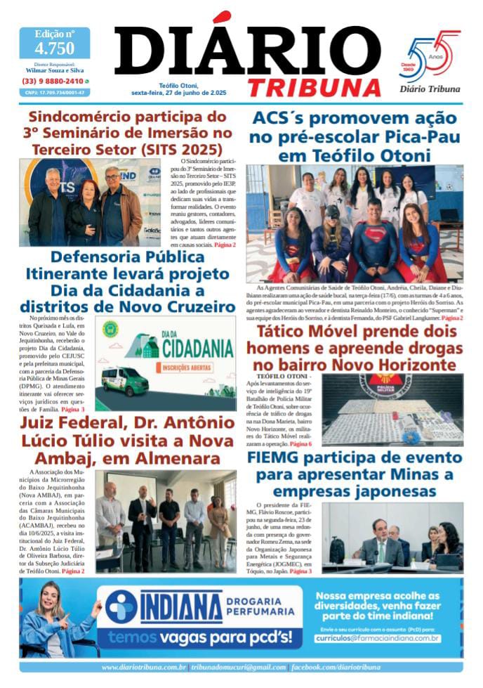 Diário Tribuna, 27 de Junho de 2025, Teófilo Otoni – MG 27/06/2025 0 92 Facebook Twitter Google+ Pinterest WhatsApp Acesse o link abaixo e veja a edição completa do Diário Tribuna desta sexta-feira (27/6/2025) https://diariotribuna.com.br/wp-content/uploads/2025/06/DIARIO-TRIBUNA-55-ANOS-27-JUNHO-2025.pdf