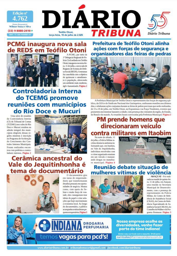 Diário Tribuna, 15 de Julho de 2025, Teófilo Otoni – MG 15/07/2025 0 43 Facebook Twitter Google+ Pinterest WhatsApp Acesse o link abaixo e veja a edição completa do Diário Tribuna desta terça-feira (15/7/2025) https://diariotribuna.com.br/wp-content/uploads/2025/07/DIARIO-TRIBUNA-55-ANOS-15-JULHO-2025.pdf