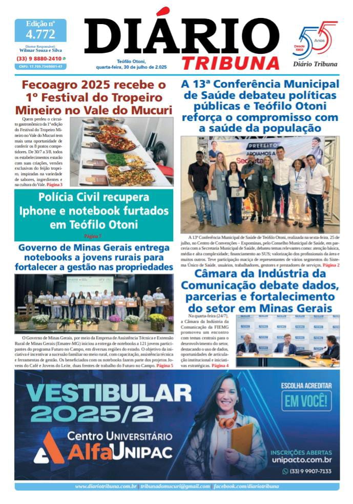 Diário Tribuna, 30 de Julho de 2025, Teófilo Otoni – MG 30/07/2025 0 65 Facebook Twitter Google+ Pinterest WhatsApp Acesse o link abaixo e veja a edição completa do Diário Tribuna desta quarta-feira (30/7/2025) https://diariotribuna.com.br/wp-content/uploads/2025/07/DIARIO-TRIBUNA-55-ANOS-30-JULHO-2025.pdf