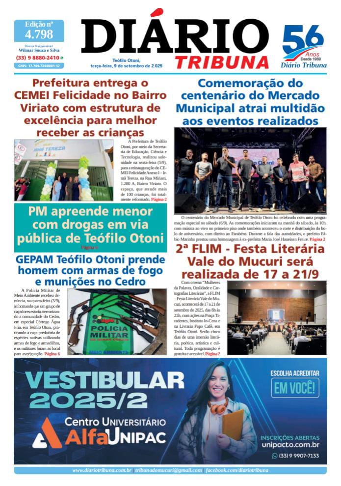 Diário Tribuna, 9 de Setembro de 2025, Teófilo Otoni – MG 09/09/2025 0 44 Facebook Twitter Google+ Pinterest WhatsApp Acesse o link abaixo e veja a edição completa do Diário Tribuna desta terça-feira (9/9/2025) https://diariotribuna.com.br/wp-content/uploads/2025/09/DIARIO-TRIBUNA-56-ANOS-9-SETEMBRO-2025.pdf