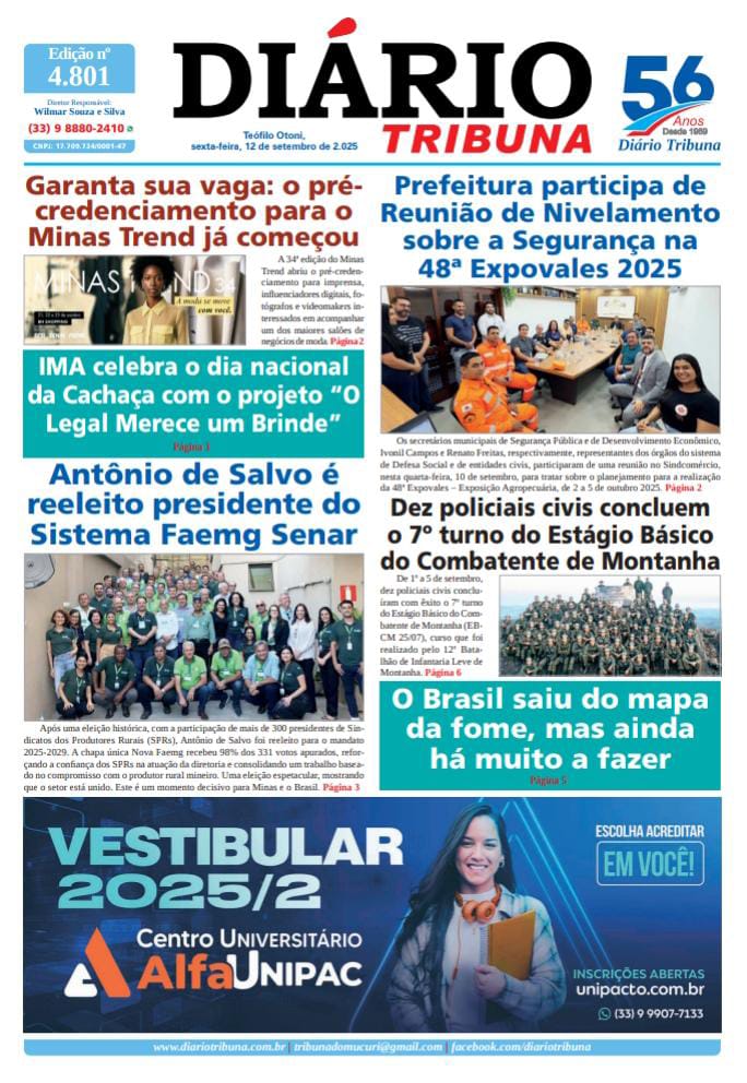 Diário Tribuna, 12 de Setembro de 2025, Teófilo Otoni – MG 12/09/2025 0 53 Facebook Twitter Google+ Pinterest WhatsApp Acesse o link abaixo e veja a edição completa do Diário Tribuna desta sexta-feira (12/9/2025) https://diariotribuna.com.br/wp-content/uploads/2025/09/DIARIO-TRIBUNA-56-ANOS-12-SETEMBRO-2025.pdf