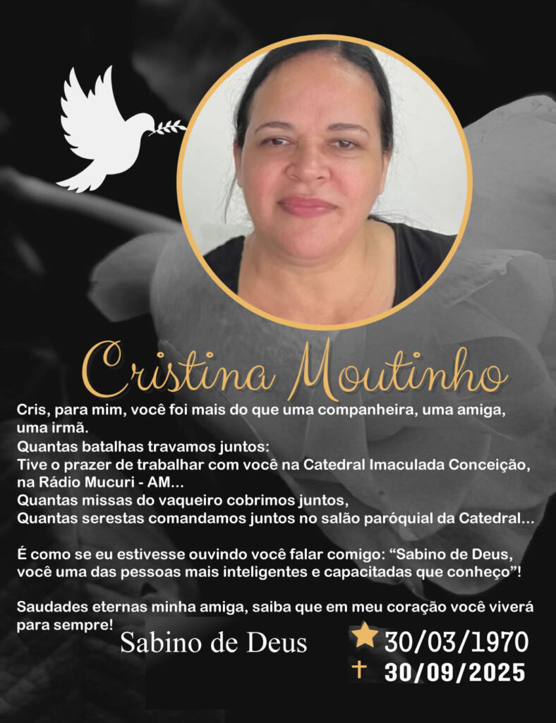 E, como o título desta matéria, que tomamos emprestado do Dr. Jeferson, é como um recado para os imediatistas de plantão, que não sabem o que é ética, que no manuseio das palavras, torcem pelos fatos, e fazem das mentiras as verdadeiras ‘verdades’. Aí vão à honradez das pessoas, depois pedem desculpas em um espaço que não tem a verdadeira imagem da mentira. Ética, não sabem o que é isto. Não sabem o que é macular a vida de uma pessoa. Isto era o que Cristina fez a vida toda. Não conheço nenhuma gota dessas coisas, que os supostos ‘escritores’ fazem todo o dia, que ela o tenha feito. O rigor com que fazemos textos, eu me incluo entre essas pessoas, nos dá a verdadeira aura de ter responsabilidade. Só quem tem a teimosia de fazer um jornal impresso é que sabe dessas coisas. Cristina trabalhava com isso, para isso. “Enquanto você tiver coragem, responsabilidade, e determinação, eu estarei com você” Dizia ela.