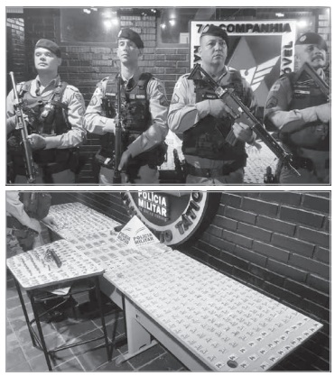Entre os materiais recolhidos estavam uma submetralhadora calibre 9mm, uma garrucha calibre .22, duas armas do tipo polveira, 133 pedras de crack, 34 buchas de maconha, 112 microtubos de cocaína, além de munições de diversos calibres, rádio comunicador, celulares, anotações do tráfico e R$ 1.595 em dinheiro. Os suspeitos e todo o material apreendido foram encaminhados para a Delegacia de Polícia Civil em Teófilo Otoni.