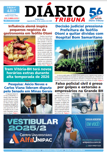 Acesse o link abaixo e veja a edição completa do Diário Tribuna de quinta-feira 13/10/2025):