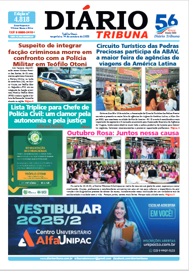 Acesse o link abaixo e veja a edição completa do Diário Tribuna de quinta-feira (14/10/2025):