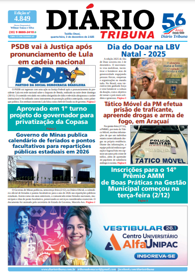 Acesse o link abaixo e veja a edição completa do Diário Tribuna de quarta-feira (03/12/2025):