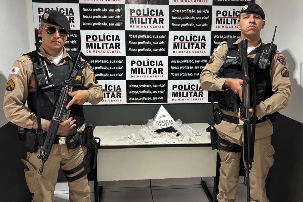 Produtividade: 651 pedras de crack, 141 porções de cocaína, uma porção grande de crack triturado e um simulacro de arma de fogo. VP 30237: Sargento Teixeira e Cabo Macedo,