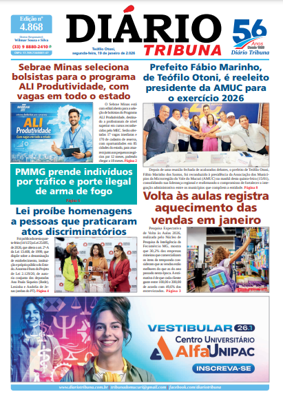 Acesse o link abaixo e veja a edição completa do Diário Tribuna de segunda-feira (19/01/2026):