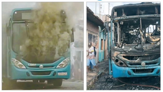 Na manhã desta quinta-feira, um ônibus da Viação Vale do Mucury pegou fogo na entrada da Vila Progresso, um pouco