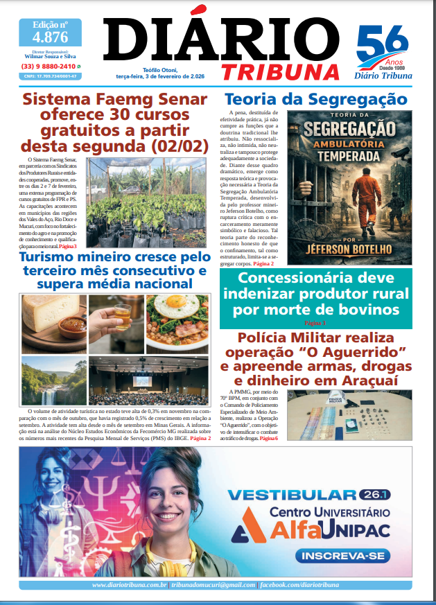 Acesse o link abaixo e veja a edição completa do Diário Tribuna de terça-feira (03/02/2026):
